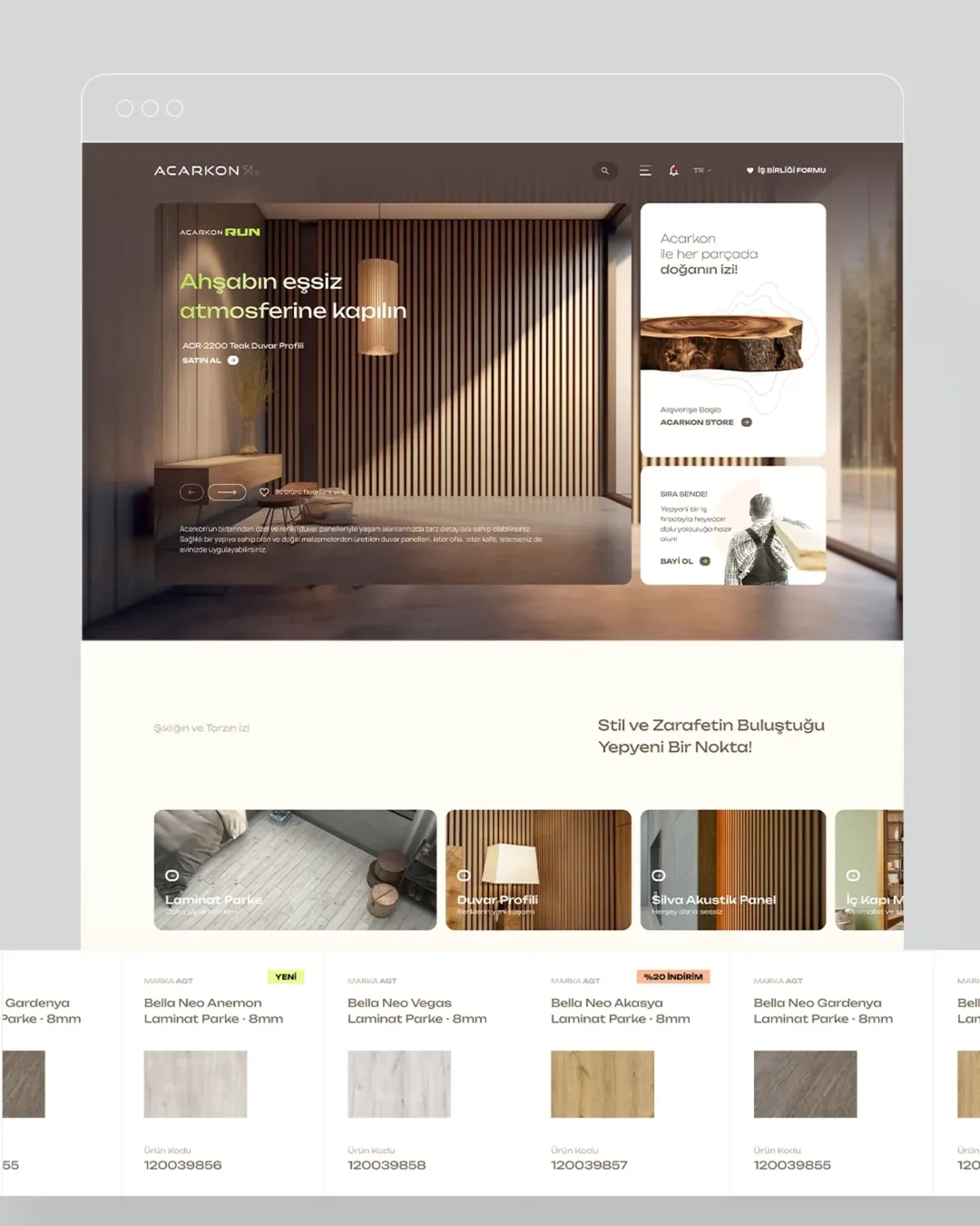 Acarkon’un sektördeki uzmanlığını ve geniş ürün yelpazesini; modern bir arayüz ve birçok farklı alanda sunduğu ürün çeşitliliğine uyumlu, modern tasarımına sahip bir web sitesi hayata geçirdik.
