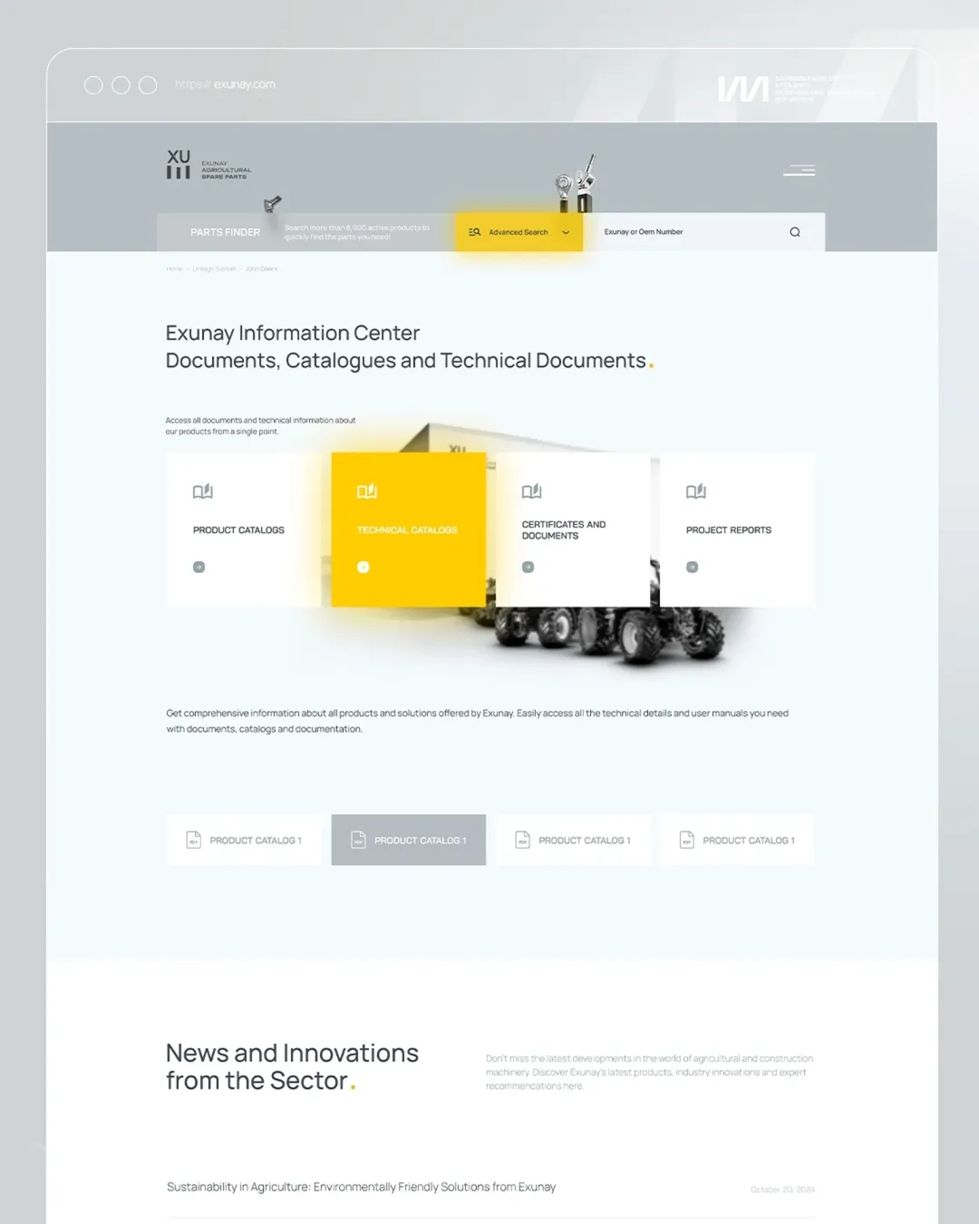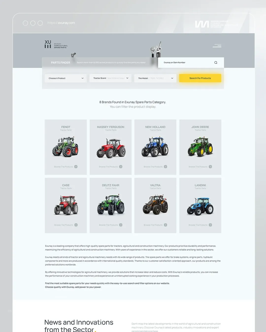 Stage Dijital tasarım ekibi, EXUNAY’ın üretimdeki hassasiyetini modern çizgilerle birleştirerek sektöre tam uyumlu bir dijital yapı oluşturmuştur. Bu tasarım dili, markanın sadece bir parça üreticisi değil, aynı zamanda traktör teknolojilerinde bir mühendislik ortağı olduğu imajını desteklemektedir.