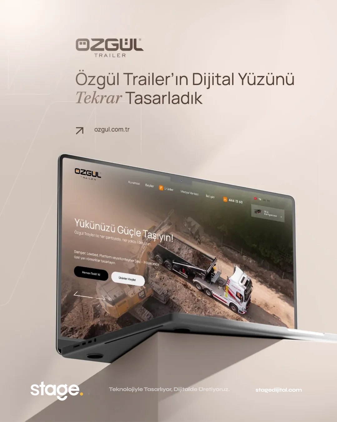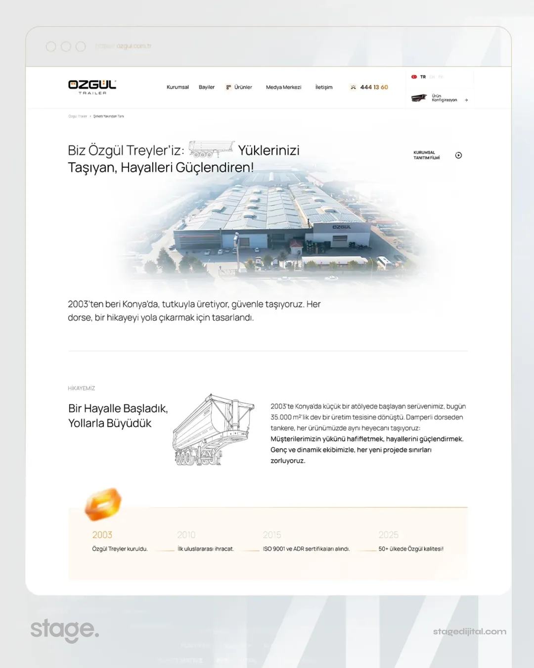 Özgül Treyler’in sektöründeki üretim gücünü; Stage Dijital imzalı modern bir web tasarımı ve yüksek performanslı bir web sitesi ile yeniden tasarladık.