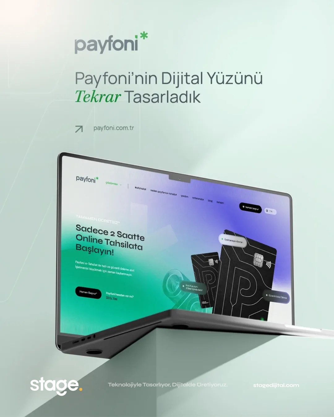 Payfoni’nin yeni dijital yüzü; estetik, teknoloji ve güven üzerine inşa edilmiştir. Geleceğin dijital dünyasında markayı bir adım öne taşımak ve prestijini her mecrada korumak için gereken tüm teknolojik altyapı bu projede başarıyla uygulanmıştır. Stage Dijital olarak, finansal teknolojiler sektöründeki bu başarı hikayesinde yer almaktan ve markanın profesyonelliğini bütünleşik hizmet anlayışımızla dijital platformlara taşımaktan mutluluk duyuyoruz.